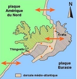 Ce qui est fun avec l’Islande c’est qu’elle est donc située sur une faille sismique exactement à la jonction de deux plaques tectoniques et c’est d’ailleurs ainsi qu’elle est née. La plaque eurasienne s’écarte de la plaque nord américaine de 2,5cm par an. Le mouvement n’est pas régulier, ça vient parfois d’un seul coup et il y a une secousse. L’ile est également située sur ce qu’on appelle un point chaud, sorte de faille sous marine dans la croute terrestre, Quand les plaques s’écartent, la faille laisse échapper de la lave du magma. Au contact de la mer froide du nord du nord de l’Atlantique nord, le magma se condense, devient solide et crée une des plus grandes îles du monde, truffée de volcans.