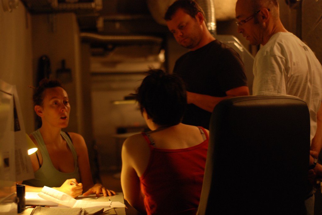 Il y eu quelques fâcheries au moment de la projection. Le bébé Ostinato semblait avoir un souci au niveau de sa voix centrale. Anne-Marie, au désarroi, accusa en public nos installations. Mais finalement en off elle admit, que, peut-être, le parrain mixeur pourrait, éventuellement, avoir été un peu responsable du manque phonique central.