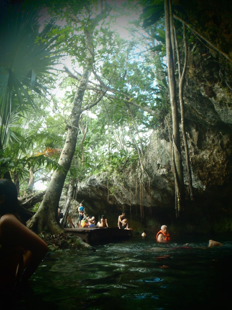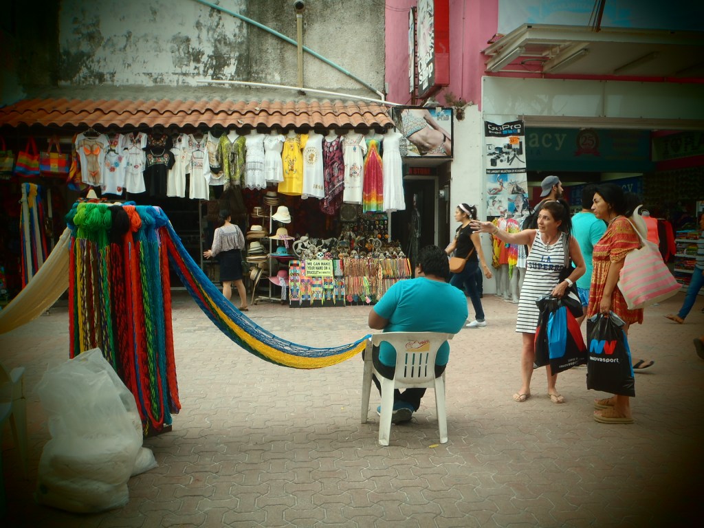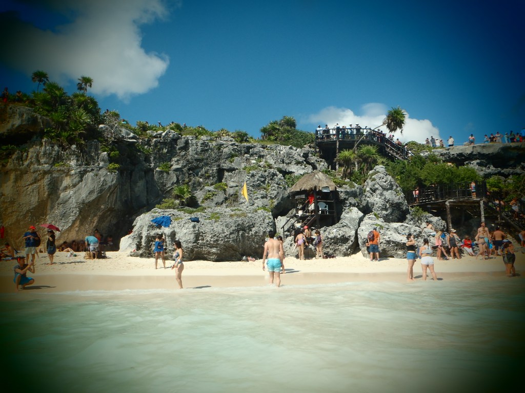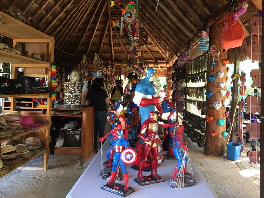 La ville de Playa del Carmen, fonctionne exactement comme les autres stations balnéaires : un hôtel plein d’étoiles, un Money Transfert, un magasin de souvenirs géant et très cher, un bar/restaurant à la musique préfabriquée etc…. Ici, on y fait la fête la nuit et on y dort sur la plage le jour. On s’y amuse, c’est-à-dire que l’on y boit, que l’on y boit beaucoup, que l’on y danse, souvent mal, qu’on y drague autant que l’on y boit et que l’on y a des activités sexuelles. Ici, c’est les vacances, c’est la fiesta à la playa et le sexe latex est un produit de consommation comme un autre. Je crains de ne pas participer aux activités proposées par la ville. Heureusement aux alentours, il y a plein de choses à faire.