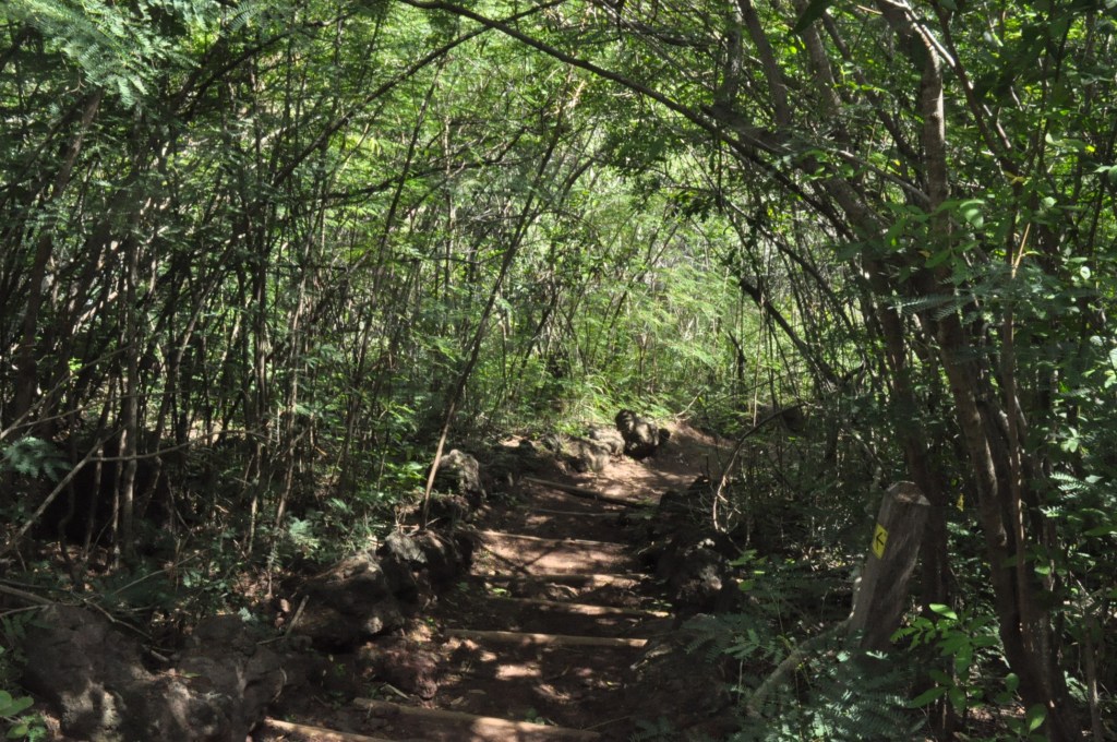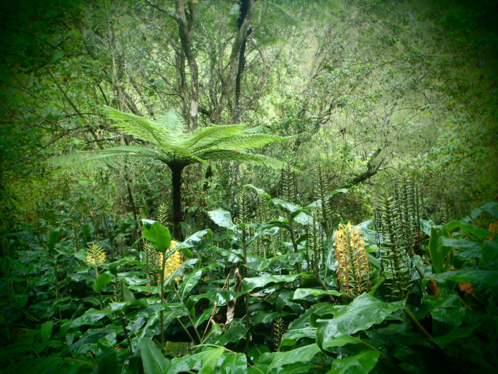 Évidemment en haut c’est saisissant et pour y accéder tout autant. Nous avons d’abord croisé des villages à flanc de montagne, puis le reste de la forêt primitive aux fougères arborescentes et ensuite un bois mélangé Japonais et Tim Burton. Sous un concert d’oiseaux et de senteur de chèvrefeuille.