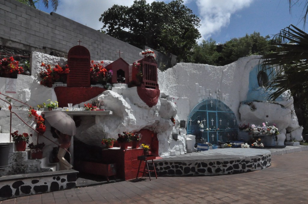 Bien sûr, l’île est d’abord : Saint Denis, Saint Paul, Saint Pierre, Saint Leu sont le noms des villes principales. Pour aller à Saint Joseph, il faut quitter Saint Pierre par Terre Sainte. À croire qu’au Paradis on a construit autant de villes qu’il y a de saints. Les églises poussent en veux-tu en voilà, toutes belles et neuves. Et puis, il y a les autels que l’on croise sur les bords des chemins : reste d’un animisme coloré, si on n’y sacrifie plus de poulet, on offre des bougies, des prières, des remerciements aux saints protecteurs.