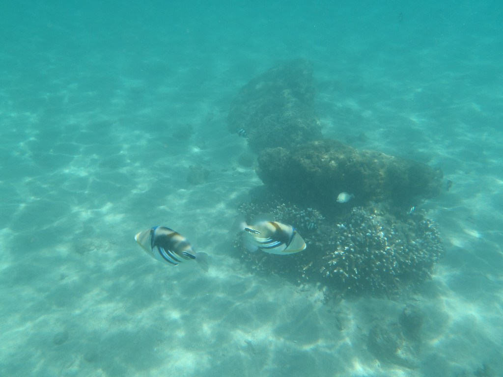 C’est amusant tous ces poissons qui nagent autours de nous, qui viennent nous dire bonjour.