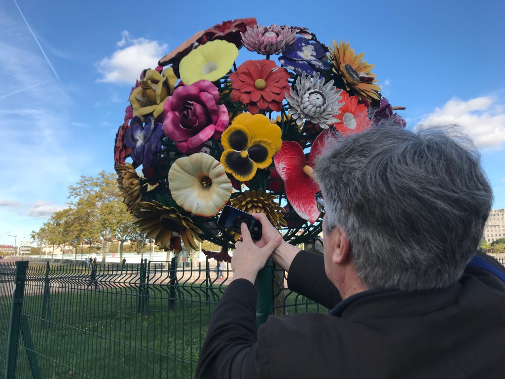 Le long du Rhône, la Biennale d’art contemporain a fait installer un dôme en métal avec un bassin en son centre. Le bassin est rempli de vases en porcelaine blanche en forme de fleurs de nénuphar. L’eau est en léger mouvement et les vases s’entrechoquent, de-ci de-là, au hasard de leurs rencontres, dans un son de tabla. On s’assoit. On écoute en cœur le mouvement aléatoire de l’eau faire de la musique.