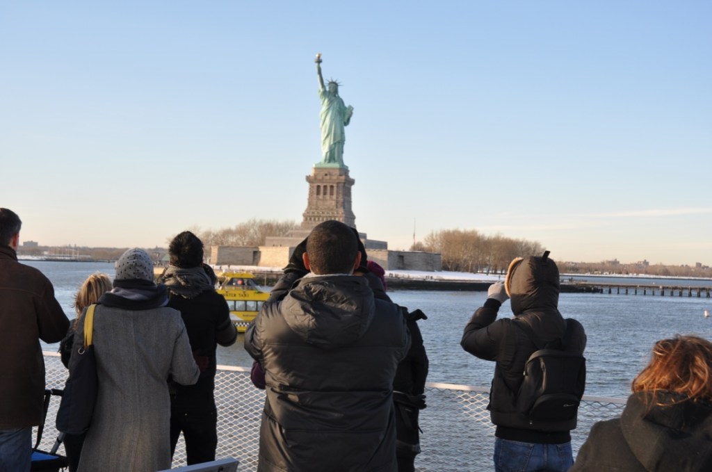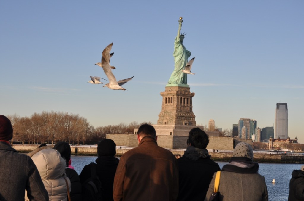 Sur Liberty Island une sorte de bonbon rose avec poussette et mari muni de dents incroyablement blanches me demande si je peux les prendre en photos devant la statue. Ils vivent à NY depuis toujours mais c’est la première fois qu’ils viennent. Ils espèrent venir à Paris mais ils ont peur des grèves et de la saleté. Ah bon ? Je tente de les rassurer, mais je ne suis pas très crédible. Il me demande alors si j’aime ma nation…. Oups, déjà la question intime ? Je plagie Brassens et répond que j’aime mon pays mais pas ma nation.
