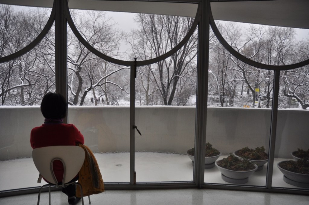 Fortes de ces informations, nous décidons, Rebecca et moi, de visiter ville et musées. C’est si simple. Pour se rendre au Guggenheim prendre la 5th avenue jusqu’à la 89th et le tour est joué. En plus il neige, Central Park sera si blanc. Magnifique balade.