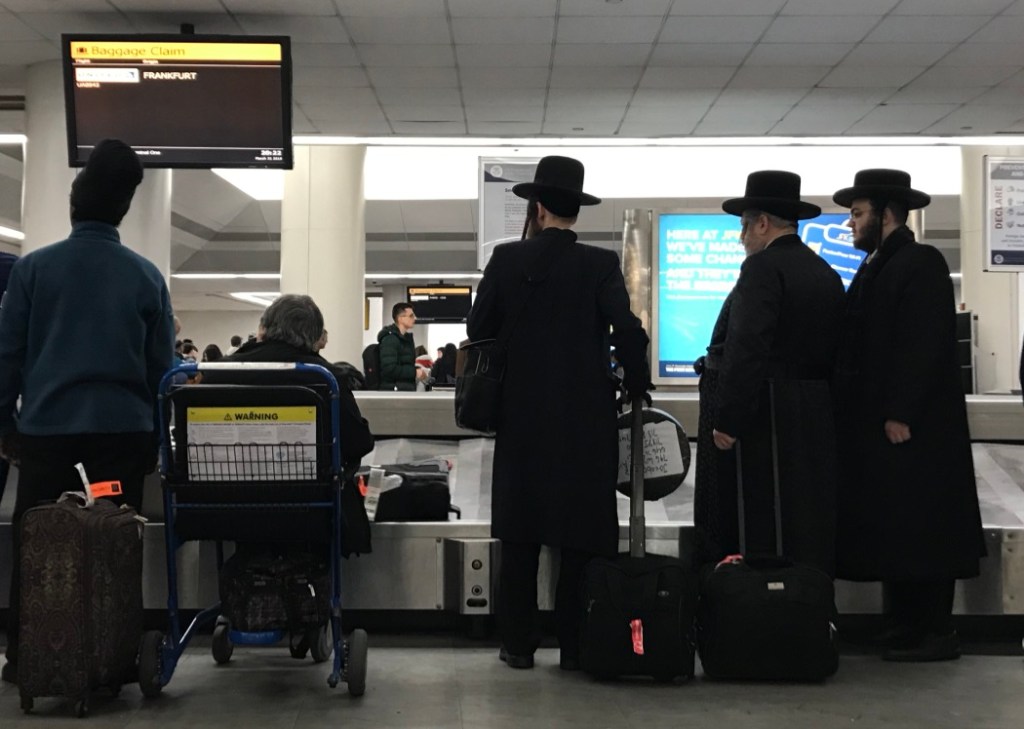 Une fois passé les contrôles, les presque 200 orthodoxes juifs se sont amoncelés autour du tapis bagages du vol de la Lufthansa en provenance de Frankfurt. Ils arrivaient donc d’Allemagne. Et alors, avec la surprise, le plaisir est revenu. Le monde est aussi petit que la grande histoire est complexe. Et moi, toute petite humaine, ça m’amuse.